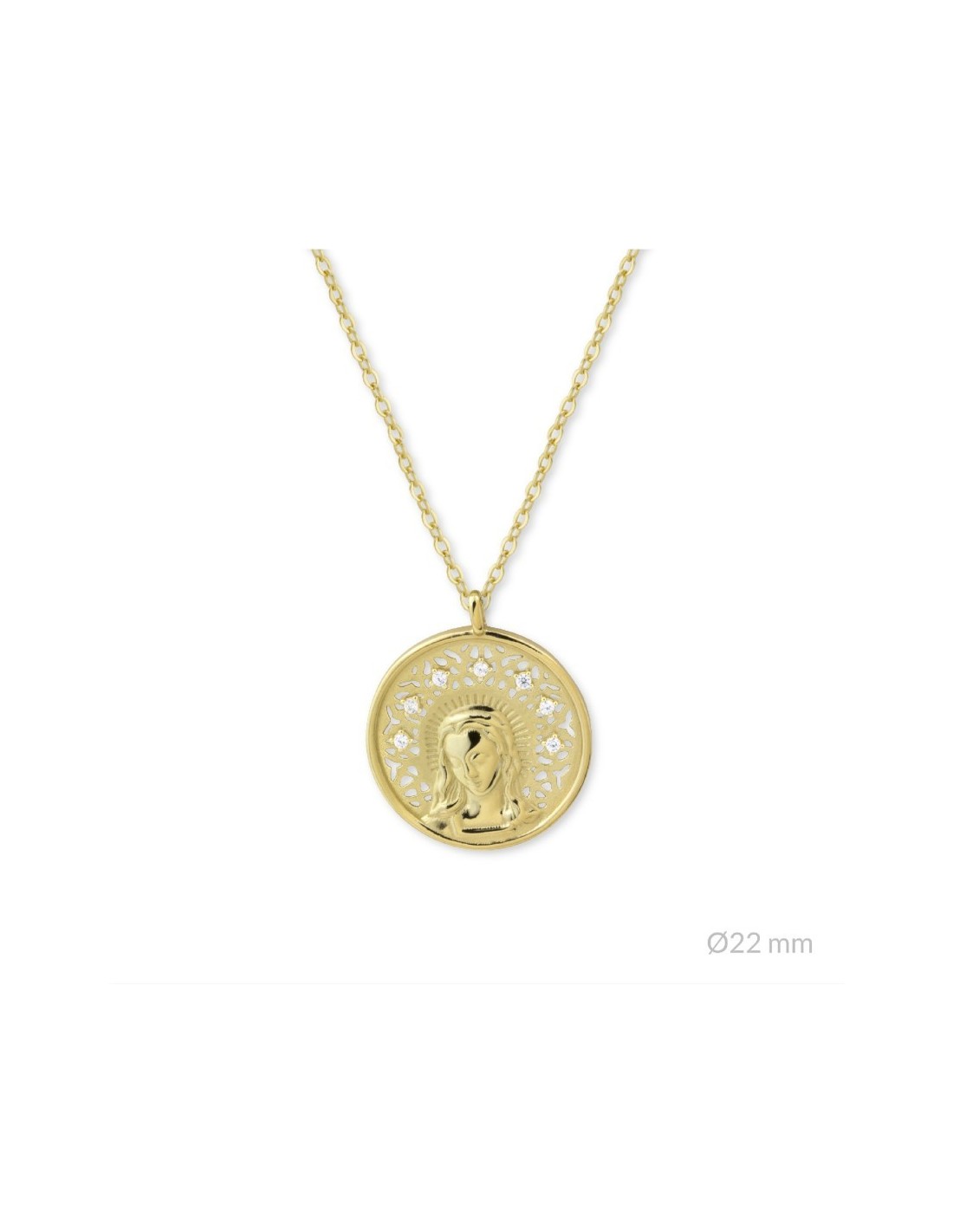 Gargantilla de plata chapada en oro de la virgen María niña